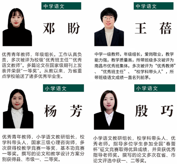 百年大計(jì)教育為本,教育大計(jì)教師為本。南昌現(xiàn)代外國(guó)語(yǔ)象湖學(xué)校嚴(yán)把教師準(zhǔn)入關(guān),科學(xué)規(guī)劃教師成長(zhǎng)路,形成了一支師德高尚、學(xué)識(shí)扎實(shí)、業(yè)務(wù)精深、高效精干、敬業(yè)愛(ài)生、結(jié)構(gòu)合理、團(tuán)隊(duì)意識(shí)強(qiáng)、富有活力的高素質(zhì)教師隊(duì)伍,為學(xué)校連年獲得高質(zhì)量的教學(xué)成績(jī)保駕護(hù)航。